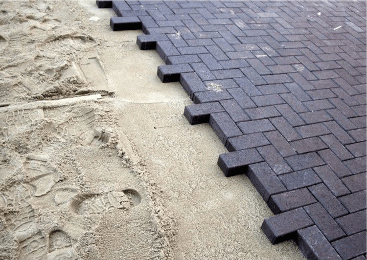 Работа по укладке брусчатки на готовое основание